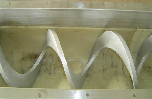 無(wú)軸螺旋輸送機(jī)與傳統(tǒng)有軸螺旋輸送機(jī)相比,由于采用了無(wú)中心軸、吊軸承設(shè)計(jì),利用具有一定柔性的整體鋼制螺旋推送物料,因而具有以下突出優(yōu)點(diǎn):