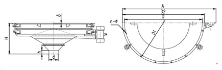 如GD06PA,為直徑φ600mm平旋震動該料斗,斗體坡角30°,中心出料
