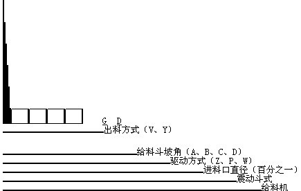 符號說明:(1)V—中心出料,一般不注明;Y—邊出料。(2)Z—直線型;P—平旋型;W—渦旋型。(3)A—30O;B—20 O;C—45 O;D—60 O。